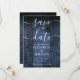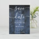 Diese elegante blaue rustikale Scheunenholz boho Hochzeit rett-the-date Karte kann mit Ihren Informationen in schicken Typografie personalisiert werden. Entwickelt von Thisisnotme©