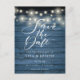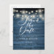 Blue Rustic String Lights QR Code Save the Date Postkarte