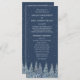 Custom wedding program for your rustic winter wedding with a snow covered country forest at night in navy blue and white. Customize these order of ceremony cards with your own text.