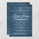 Une première invitation rustique à la communion sainte avec vos détails spéciaux et personnalisés dans la typographie chic sur un arrière - plan de panneaux de bois bleu. Conçu par Thisisnotme©