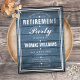Eine stilvolle Ruhestandszeit-Party Einladung kann mit Ihren speziellen Veranstaltungsinformationen auf einem blauen rustikalen Holzpaneelhintergrund personalisiert werden. Entwickelt von Thisisnotme©
