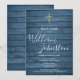 Blue Rustic Wood Script Taufe Christening Einladung
