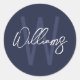 Blue Script Personalisiert Monogram und Name Runder Aufkleber