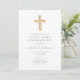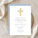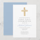 Blue Script Religious Cross Boy First Communion Einladung