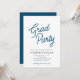 Diese Graduiertenparty-Einladung zeichnet sich durch ein einfaches Design aus, das mit dunkelblauem Schriftzeichen mit dem Aufdruck "Grad Party" versehen ist. Personalisiert mit all Ihren Abschluss Feiern Party Details.