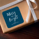 Blue Scripted Merry and Bright Quadratischer Aufkleber