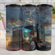 Blue Semi Truck Sunset Scrollwork Thermosbecher