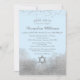 Eine elegante Blu und Silber Bat Mitzvah Einladung mit silbernen Glitzer Konfetti am oberen und silbernen Glamour am unteren Rand mit einem silbernen Glitzer Star of David.