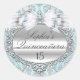 Sticker für Quinceanera. Blauer Damast & Silberschmuckbogen. Exklusiv Zazzle. Passen Sie Ihre persönlichen Daten an. Bitte beachten Sie alle flachen Bilder! Sie haben KEIN echtes Silber, Bögen, Diamanten oder Juwelen!!