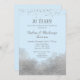 Eine elegante Party Einladung zum Hochzeitsjubiläum in Blau und Silber mit Konfetti-Silberstaub am oberen Ende und Silberglanz am unteren Rand.