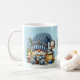 Mit dieser zauberhaften, blauen und silbernen Tasse Weihnachten Gonk. Der gemütliche Gonk in einem klobigen Strickhut, der mit silbernen Sternen geschmückt ist, sitzt durch eine glühende Laterne und einen bunten Baum, der perfekt dazu geeignet ist, Ihrem Drink ein friedliches und festliches Ambiente zu verleihen.