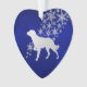 Dieses hübsche Holiday-Ornament wird für jeden, der in der Bretagne Lieben hat, ein wundervolles Geschenk machen! Es zeigt eine silberne Silhouette Bretagne Hundebild vor einem Spray von verzierten silbernen Schneeflocken. Das Bild wird auf einem Gradienten tiefblauen Hintergrund platziert. Die Rückseite des Ornaments hat den gleichen blauen Hintergrund und Schneeflocken, und ein Textfeld für Sie anpassen. Schön!
