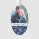 Dieses hübsche Urlaubssake-Ornament zeigt Ihr eigenes Foto, mit einer Unterseite eines silbernen Schneeflockenmusters auf dunkelblau. Ein silbergraues Banner hält Ihren personalisierten Text in passendem Blau. Die Rückseite des Ornaments hat das gleiche blaue und silberne Schneeflockenmuster mit einem zusätzlichen Textfeld. Das macht ein schönes Sake-Geschenk für frisch vermählte oder ein Paar. *Tipp zum Platzieren Ihres Fotos — nach dem Hochladen verwenden Sie "Anpassen" und die Pfeiltasten, um es für das beste Aussehen zu verschieben.*