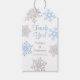Lapis blau und silber grau (grau) Schneeflocken Winterhochzeit danke Ihnen für Tags. Dieses personalisierte Tagdesign für die Gastgeschenk Hochzeit ist eine großartige Wahl für eine Winterhochzeit mit einem silber- und lapis-blauen Schneeflockenthema. Alle Formulierungen auf diesen kühnen und modernen Winterschneeflocken personalisierte Hochzeitsdanken-Sie favorisieren Tags können geändert werden. Hinweis: Dies ist ein flaches, bedrucktes Design ohne 3D- oder Hochverzierungen. Die silberne Farbe wird durch die Tinte simuliert und ist nicht metallisch.