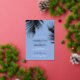 Einfache, moderne Einladung zur Hochzeit mit Palmenblättern. Anpassbar mit anderen gewünschten Farben, kontaktieren Sie Designer mit Anfragen