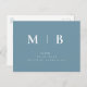Blue Simple Contemporary Monogram Save the Date Postkarte