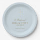 Blue Simple Elegant Gold Cross Taufen Christening Pappteller