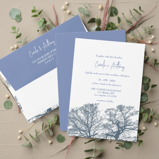Blue Single Tree Boho Wedding Einladung