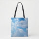 Diese Tasche weist weiche, flauschige Wolken gegen einen hellblauen Himmel auf.