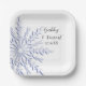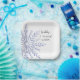 Blue Snowflake on White Winter Wedding Pappteller