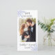 Erzählen Sie Ihre kommenden Winter-, Januar- oder Februar-Wunder-Themennuptien mit der festlichen Blauen Schneeflocke auf der White Winter Wedding Save the Date Foto Card. Diese wintery benutzerdefinierte Ehe behalte die Datums-Fotokarte mit einem aufwändigen Snowflake-Design mit einem blauen und weißen Hintergrund.