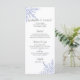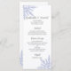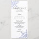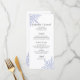 Les flocons de neige bleus festifs sur White Winter Wedding Menu peuvent être personnalisés avec les détails du repas que vous pourrez servir à votre déjeuner de douche nuptiale de décembre, janvier ou février, dîner de réception matrimoniale ou brunch post-mariage en ajoutant la salade ou le premier plat, entrée ou deuxième plat et dessert ou troisième plat. Personnalisez-le avec les noms de la mariée et du marié, l'emplacement du lieu et la date de l'événement. Cette élégante carte de mariage de campagne hivernale présente des flocons de neige de couleur bleue complexe qui ornent les coins d'un arrière - plan blanc.