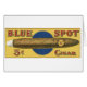 Blue Spot Cigar ist eine Vintage-Anzeige aus dem Jahr 1905. Ein goldener Hintergrund mit einem blauen Kreis in der Mitte eine Zigarre in der Mitte mit den Worten Blue Spot um sie herum.