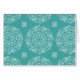 Dieses weiße Mandala liegt auf einem aquamarinen, hellen Hintergrund. Die Farbe ist beruhigend und harmonisch. Teil der Sammlung Dagrewi Mandala.