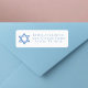 Dieses hellblaue Bat Mitzvah Party Rücksendelabel hat einen schönen, künstlerischen Star von David zeichnend neben Ihrer Zuhause-Adresse. Füllen Sie die Etiketten mit Ihrem personalisierten Namen auf einem weißen Hintergrund aus.