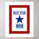 Blue Star Mama. Militärfamilienunterstützung für Söhne und Töchter, die in den Streitkräften der Vereinten Staaten tätig sind und derzeit im Einsatz sind oder Wehrdienst absolvieren. Blauer Stern auf dem Feld von Weiß mit rotem Rand.