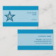 Modernes Design mit einem "leuchtenden, funkelnden" blau-weißen Stern auf einem zweifarbigen blauen Hintergrund. Visitenkartenvorlage mit individualisierbarem Design für Sie, um mit Ihrem eigenen Text, Bildern und Ideen zu personalisieren. Bitte beachten Sie, dass es sich um ein gedrucktes Bild handelt, das unter Verwendung von Originalfotos und Digitaltechniken erstellt wurde. Es strahlt nicht aus oder enthält echte Glitzern.