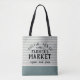 Moderne Bauernmarkttasche personalisiert mit Ihrer Stadt, Familienname oder anderen Sondertexten. Bitte beachten Sie, dass die subtile Leinenstruktur Teil des bedruckten Designs ist und das Produkt nicht aus echtem Leinenstoff besteht. Klicken Sie auf die Schaltfläche "Anpassen", um Ihren eigenen Text hinzuzufügen und Ihr eigenes einzigartiges Design zu erstellen!