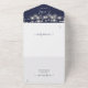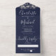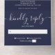 Alles in einer modernen minimalistischen Hochzeitseinladung mit hübschen Saitenlichtern und eleganten Signatur-Script-Namen und Monogramm-Initialen auf marinebasischem Hintergrund. Die Einladung enthält eine perforierte RSVP-Karte. Entwickelt von Thisisnotme©
