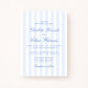 This wedding invitation features a soft blue and white vertical stripe pattern paired with elegant script typography. The classic stripe design gives the invitation a timeless and refined look, while the light blue color palette keeps it fresh and modern. The combination of clean stripes and flowing script lettering creates a balanced style that feels both traditional and modern.