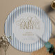 Hello baby Elegant minimal baby shower plate that features a custom hello baby typographyand blue & white stripe pattern and a cute baby bottle with a bow.