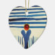 BLUE STRIPES & RED RUBY HERZ KERAMIKORNAMENT