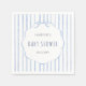 Elegant baby shower napkin featuring soft blue vertical stripes, a delicate scalloped frame, and a charming ribbon detail. This timeless design blends classic and modern styles, perfect for a refined baby boy celebration. Fully customizable with your event details.