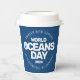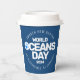 Der 8. Juni (Welttag der Ozeane) ist ein unvergessliches Ereignis mit diesen Gedenktassen, die das Thema "Erwachte neue Tiefen" aus dem Jahr 2024 enthalten, das eine stilisierte aquatische Kugel mit dem Buchstaben "O" von "Ozeane" umschließt. Umkehrung zeigt identisches Design. Kopieren und Layout © W.H. Sim. Alle Rechte vorbehalten. Weitere Informationen unter zazzle.com/expressionsoccasions