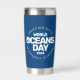 Der 8. Juni (Welttag der Ozeane) ist ein unvergessliches Ereignis mit diesem aus Edelstahl gefertigten Edelstahl-Tallwäscher, der unter dem Motto "Erwachte neue Tiefen" aus dem Jahr 2024 eine stilisierte Wasserkugel im Buchstaben "O" von "Ozeane" umschließt. Umkehrung zeigt identisches Design. Kopieren und Layout © W.H. Sim. Alle Rechte vorbehalten. Weitere Informationen unter zazzle.com/expressionsoccasions