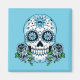 Dia de los Muertos (Tag der Toten) Zuckerschädel mit Rose und Herzen in Blautönen.