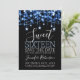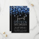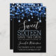 Blue & Black Sweet 16 Birthday Funkelnd String Lights "Save the Date" Ankündigungsvorlage mit Party-Adresse und UAWG Details.