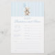 Add a touch of elegance to your teddy bear themed baby boy shower with our sophisticated "Baby predictions and advice" game. Featuring a charming teddy bear wearing a cute blue bow, holding blue balloon, surrounded by blue striped pattern, this delightful activity is perfect for entertaining your guests and creating lasting memories. Ideal for adding fun and excitement to your special celebration!