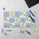 Elegant watercolor french country blue tile and lemon pattern desk mat to decorate your home with grace.