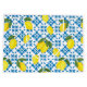This gift bag features a watercolor French country tile and lemon pattern in blue and yellow.