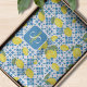 This tissue paper features a watercolor French country tile and lemon pattern in blue and yellow. It is easily customizable with your name and monogram.