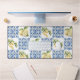 Elegant watercolor french country blue tile and lemon pattern desk mat to decorate your home with grace.