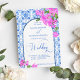 Blue Tiles und Bougainvillea elegante mediterrane griechische Santorini Mykonos themed Hochzeitseinladung Vorlage sofortigen Download alles in einem - mit qr uAwg code auf der Rückseite, fügen Sie einfach Ihre URL und Zazzle wird Code für Sie generieren.