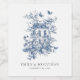 Blue Toile De Jouy Blumennamen Datum Hochzeit. Einfach mit Ihren Namen und Ihrem Hochzeitsdatum personalisieren. Über dem Text steht ein blauer Toile de jouy Blumen- und Hausdesign.