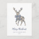 Dieses Design ist in blauen französischen Töpfern- und Kokettenstilen gehalten und mit einer Rentiergrafik vermischt. Text: "Frohe Weihnachten", editierbar für den Gruß Ihrer Wahl und einfach mit Ihrem persönlichen oder Familiennamen anpassen.