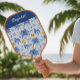 Blue Toile Palm Trees Lemons Monogram Name Pickleball Schläger